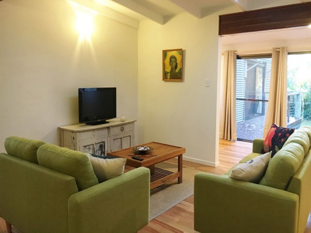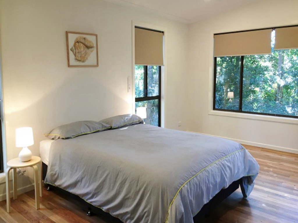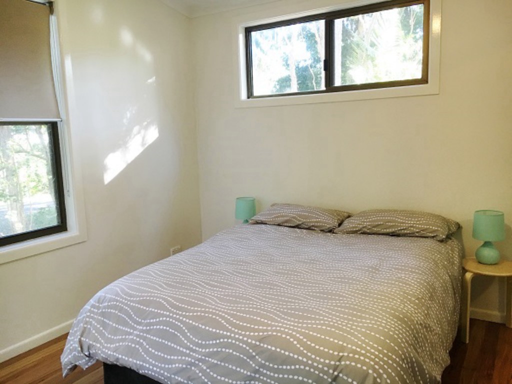 This 3 bedroom elevated timber home with polished timber floors features main bedroom with deck overlooking garden area,